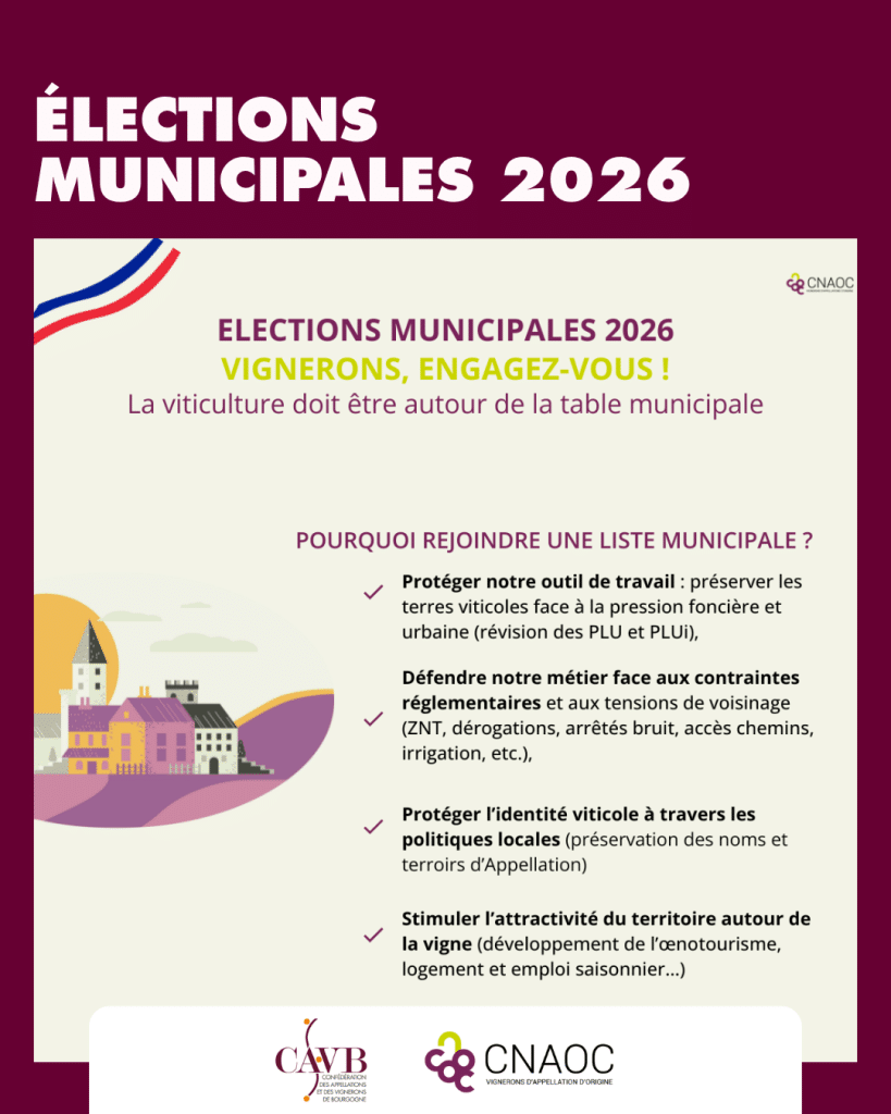 À moins de six mois des élections municipales du 15 mars 2026, la CAVB, aux côtés de la CNAOC, invite les vignerons et représentants d’ODG à s’impliquer dans la vie locale.
